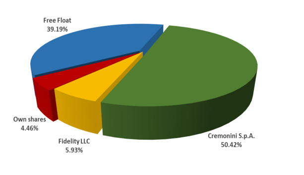 MARR is controlled by Cremonini SpA with a share of 50.42% of the capital. According to art 120 of the Consolidated Law on Finance ("TUF"), Fidelity LLC has a share of 5.93%, the free floating amounts to 39.19% of the capital, net of treasury shares for 4.46% of the capital.